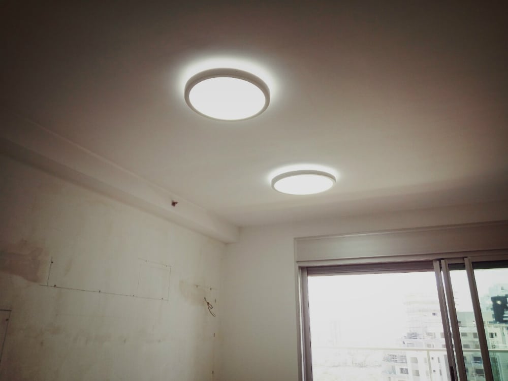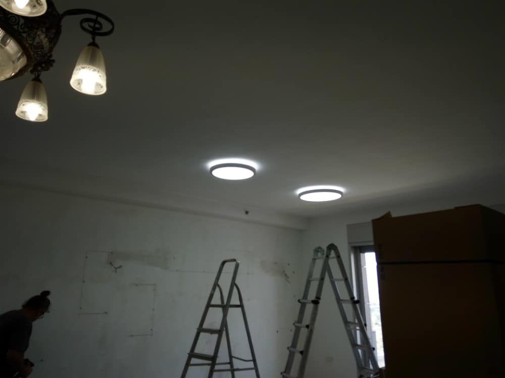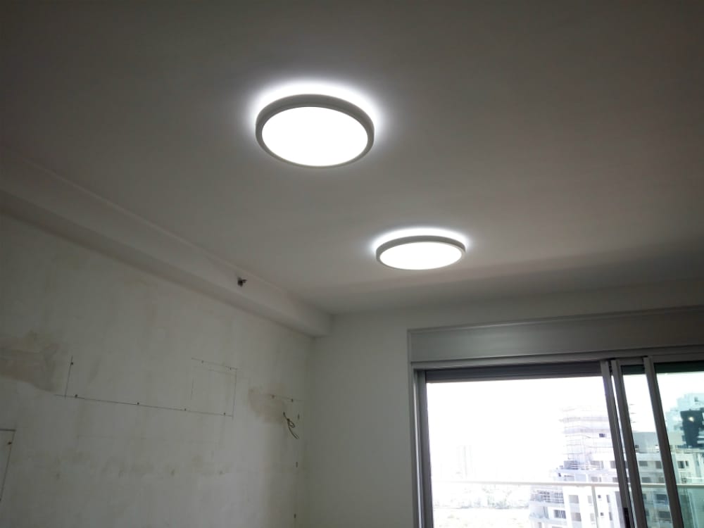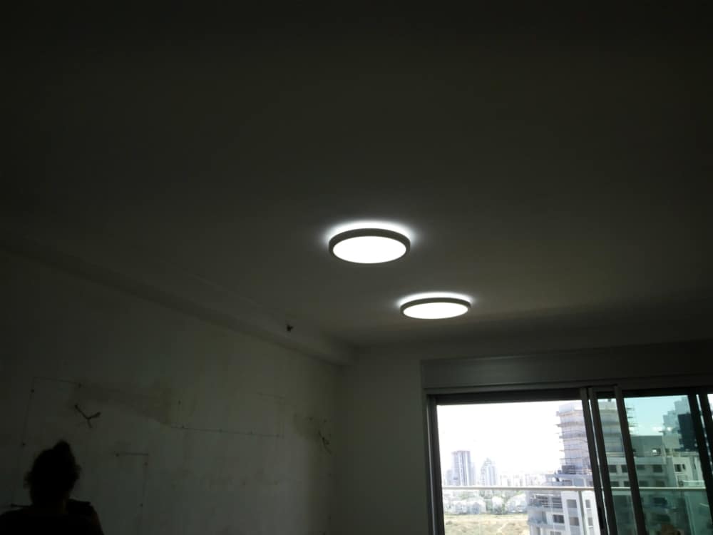מרכיבים:גופי תאורה DOWN LIGHT, ספוטים שקועים בארונות תצוגה, DOWN LIGHT עם אפקט הילה בסלון